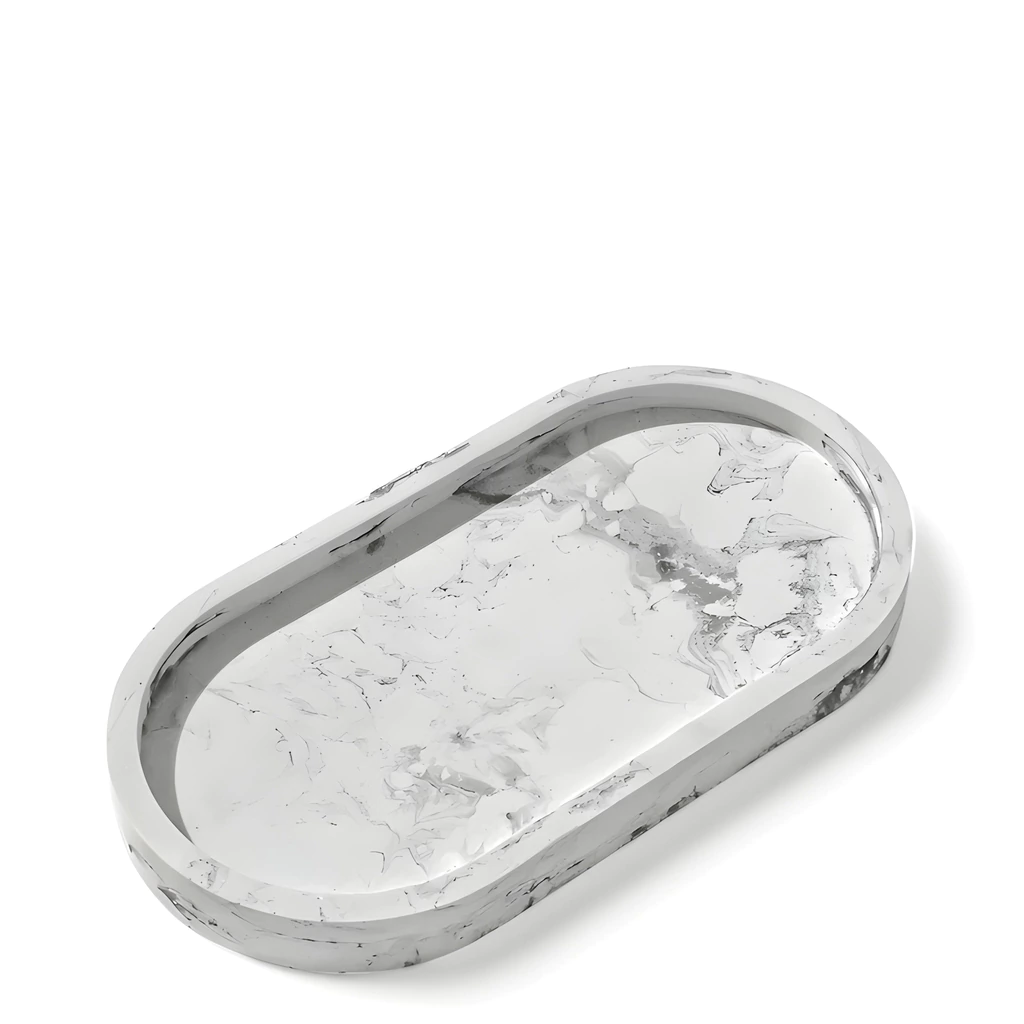 Bandeja Oval de Cemento (Simil Mármol Blanco)