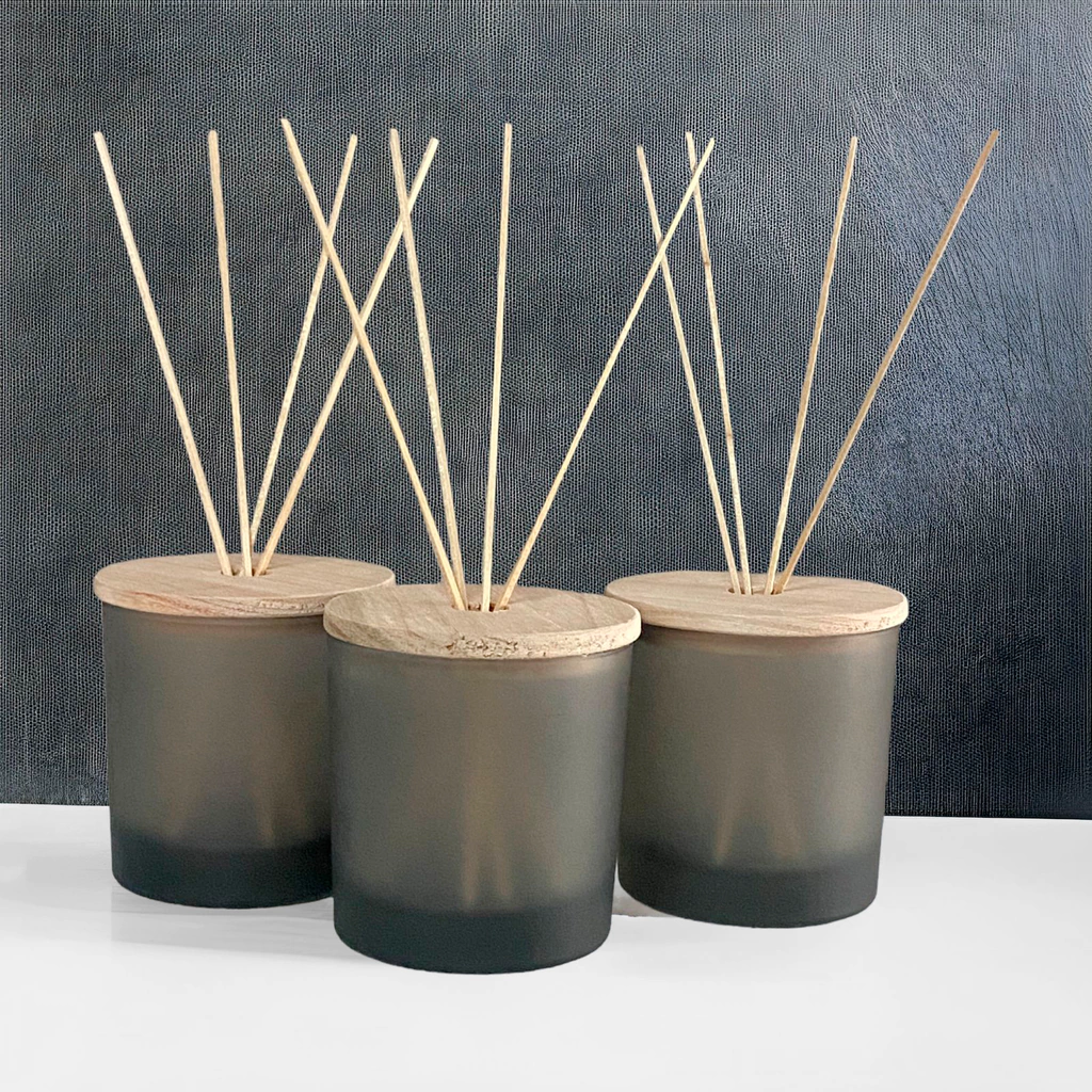 Difusor de Vidrio + Varillas (320 Ml.) Tapa Madera Maciza
